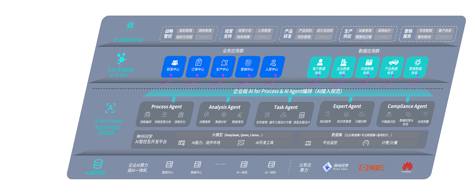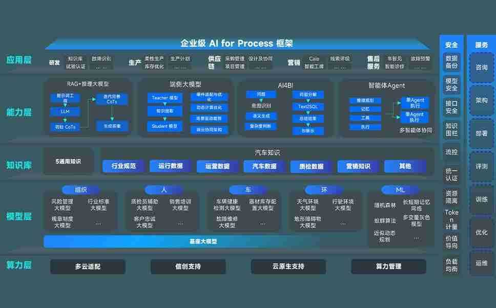 2017金沙集团问学智车解决方案是一套基于AI技术的汽车行业智能化系统,,,覆盖从底层算力到顶层AI应用的全栈方案。。方案由算力层、、、模型层和应用层组成:算力层,,方案支持多种一体机配置,,,具备云端灵活部署、、多云适配以及动态优化计算资源的能力;模型层,,,2017金沙集团问学平台版提供了企业级AI应用一站式构建与管理平台,,,,支持基于后训练强化技术的汽车企业专属模型的训练、、、、评测和运营;应用层,,,2017金沙集团问学DeepSeek版提供包括超级员工、、智能招采、、智能营销、、智能客服、、、、AI for BI等一系列解决方案,,,可助力汽车行业实现数字化转型,,,让管理更智能、、、响应更敏捷。。。。
